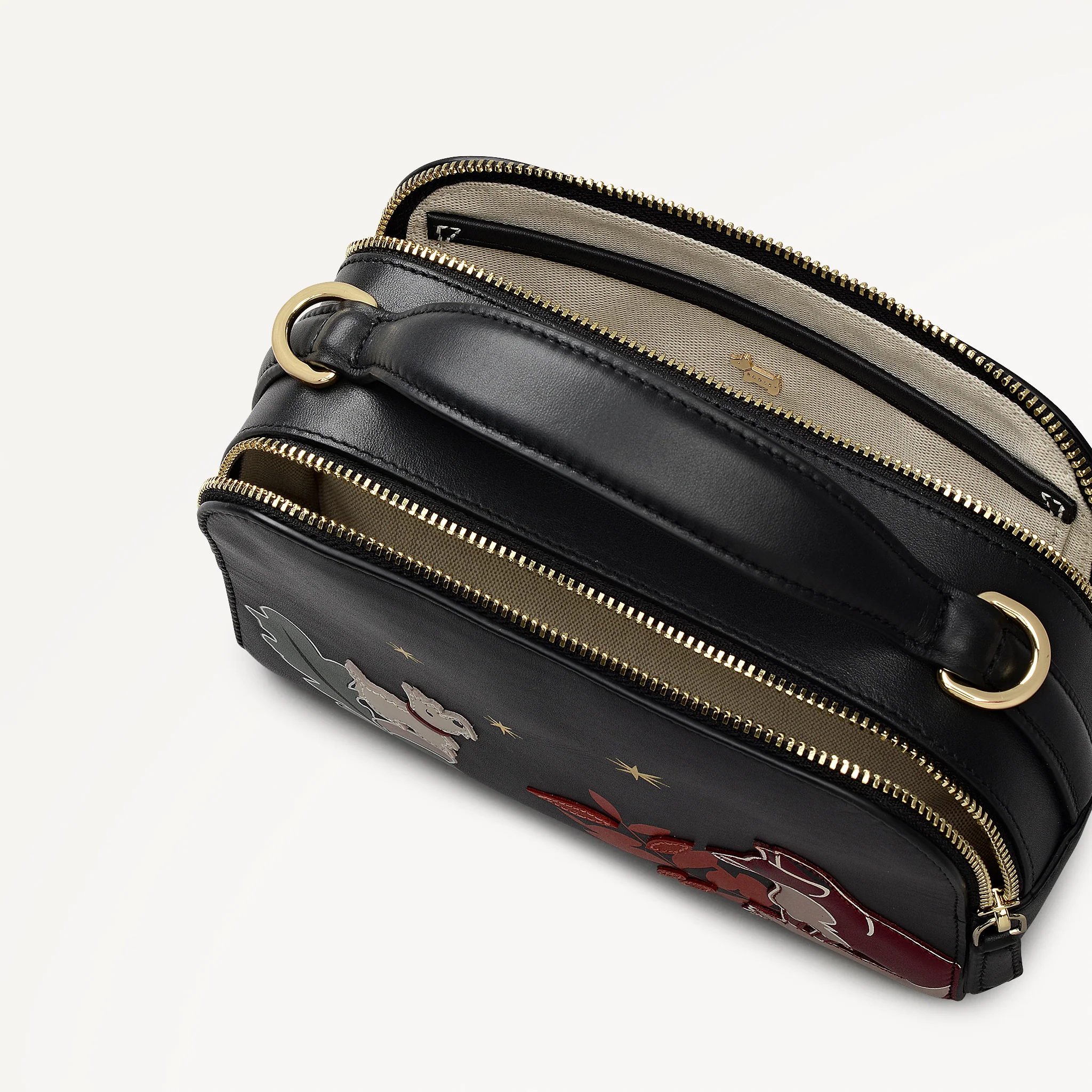 Fleeting Fox Leather Small Ziptop Cross Body Bag in Black - 112758