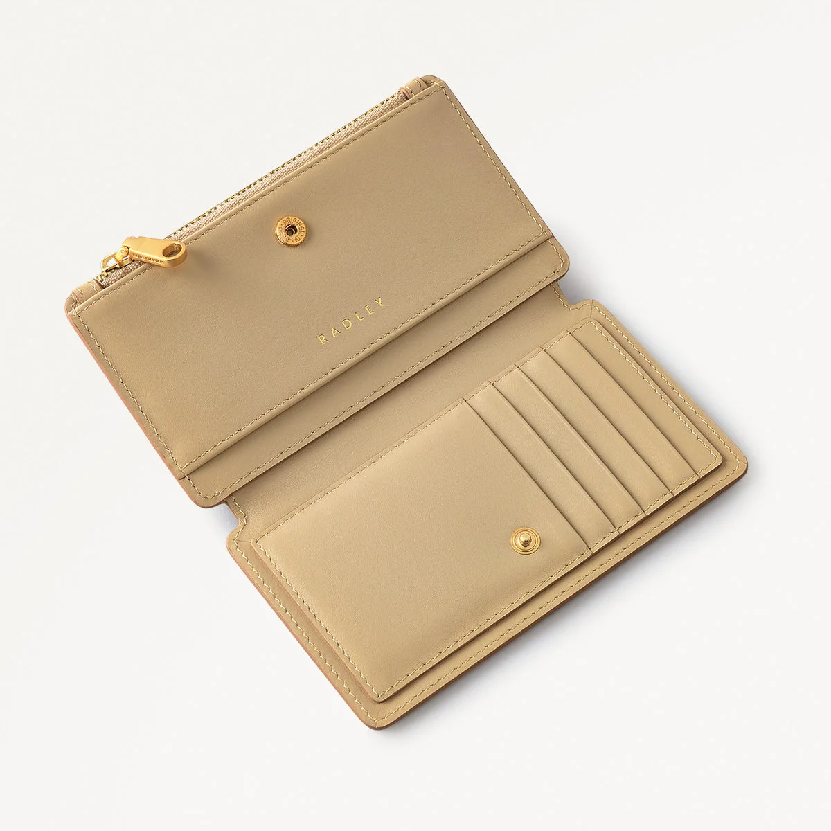 - Zipped coin pocket with branded metal puller
