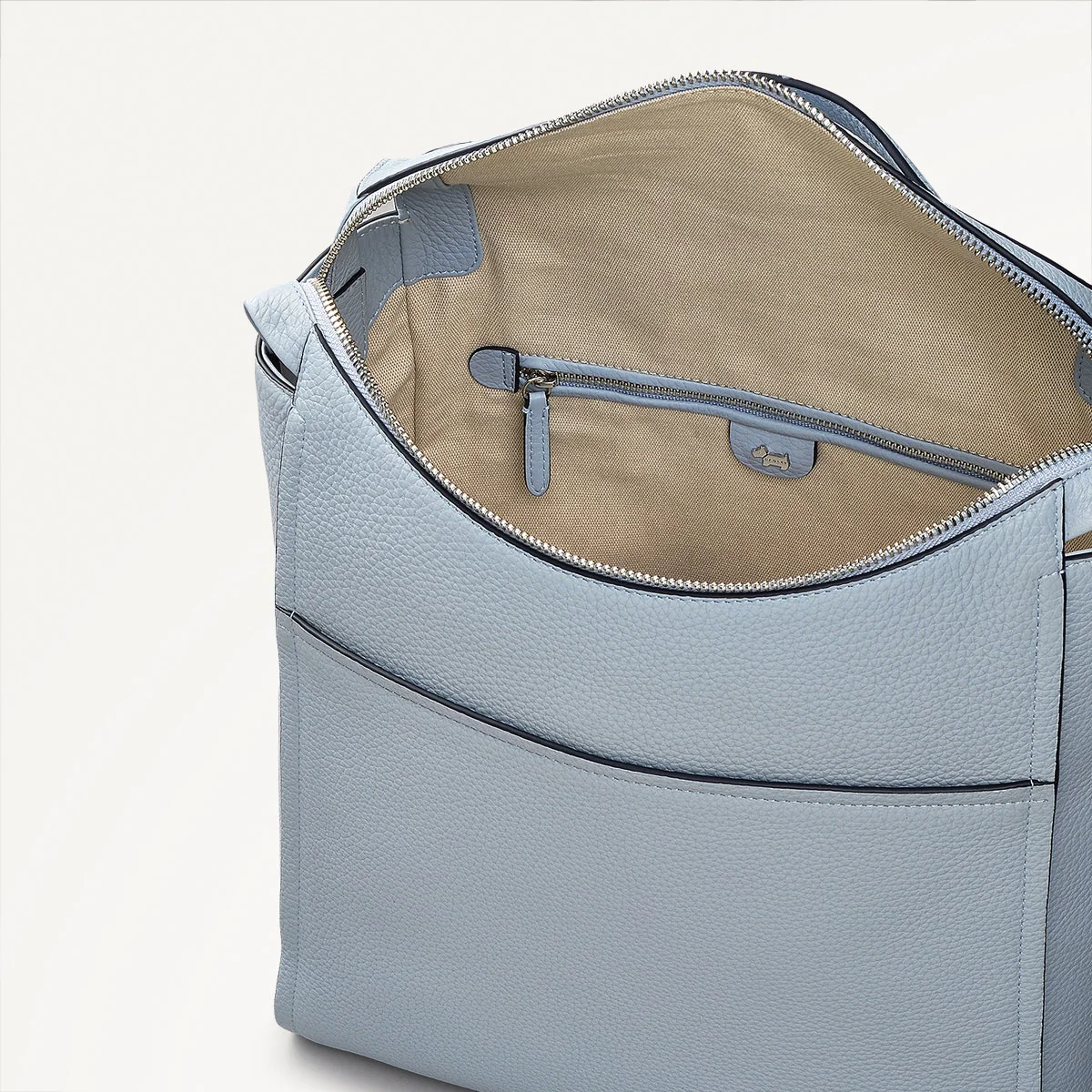 Oak Street Leather Medium Ziptop Backpack in Smoke Blue - 110642