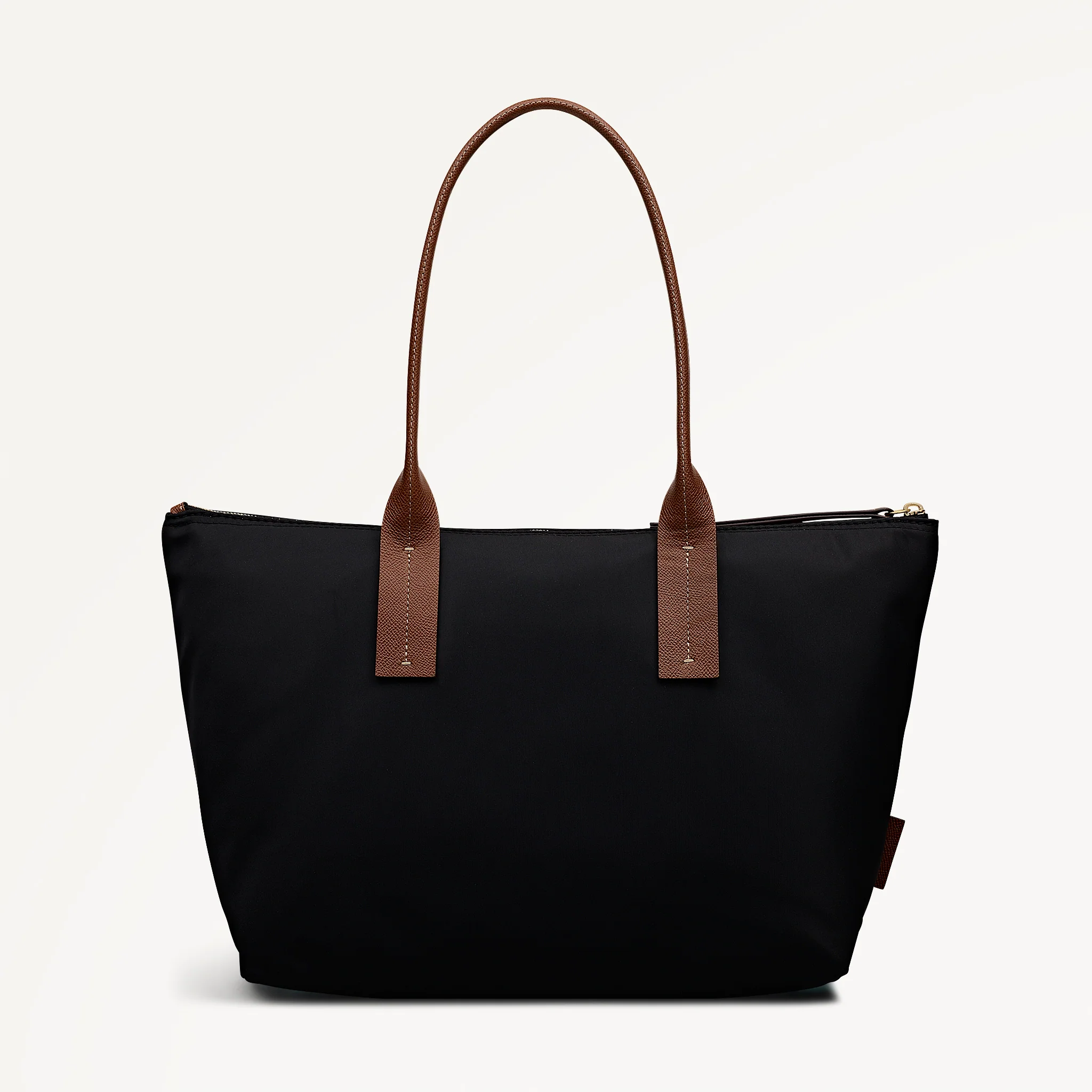 The Townley combines our penchant for premium leathers with our responsible approach to craftsmanship, with recycled polyester fabric and contrast leather trims. A smart satchel bag, detailed with central-stitched handle tabs and a chunky zip with a looping leather puller.