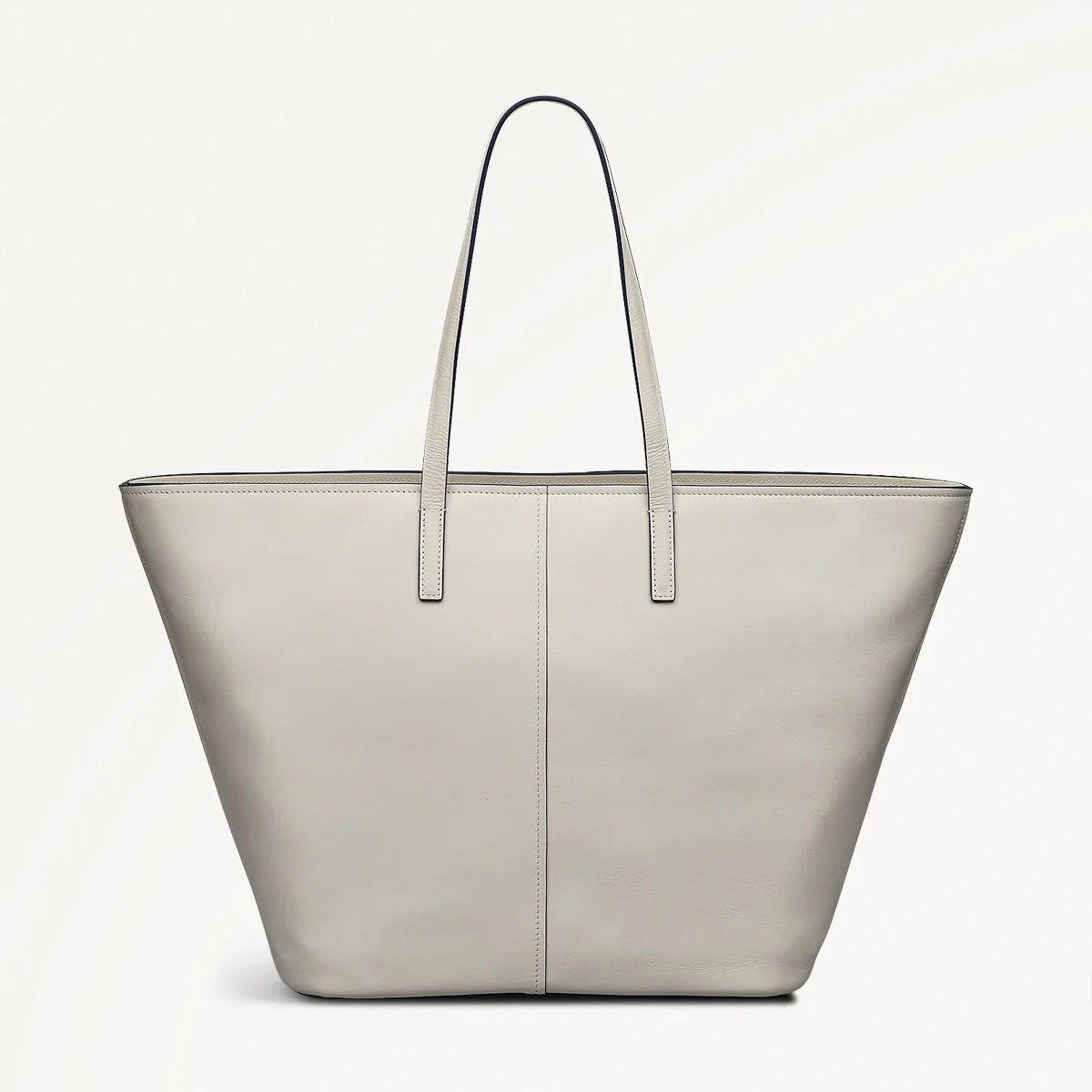 Under The Sea Leather Large Open Top Tote Bag in Chalk - 111455
